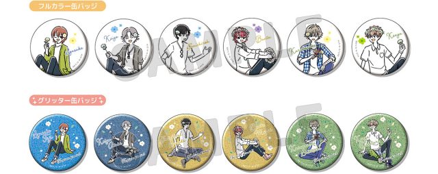 B→不二周助、跡部景吾、真田弦一郎、丸井ブン太、白石蔵ノ介、忍足謙也 (フルカラー缶バッジ6種+グリッター缶バッジ6種・ランダム商品)