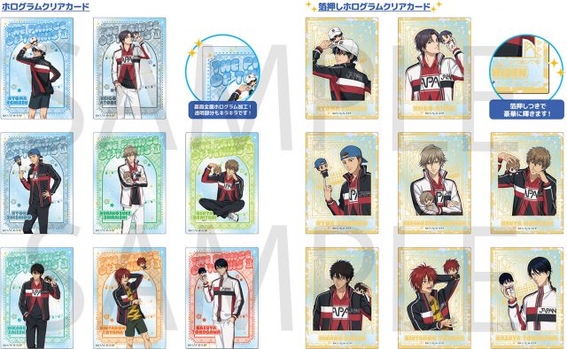■種 類:越前リョーマ、跡部景吾、宍戸 亮、白石蔵ノ介、忍足謙也、財前 光、遠山金太郎、徳川カズヤ(ホログラムクリアカード8種+箔押しホログラムクリアカード8種・ランダム商品)